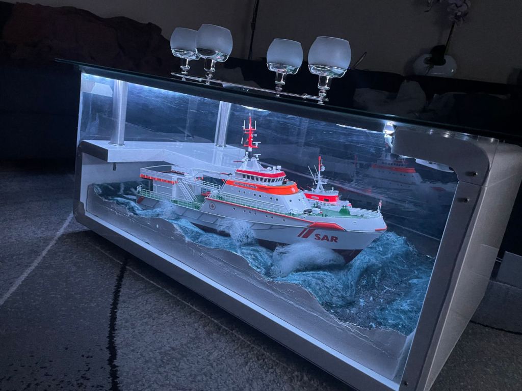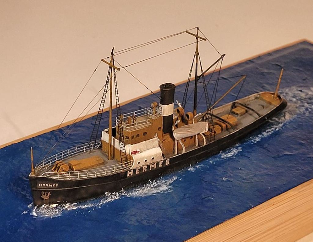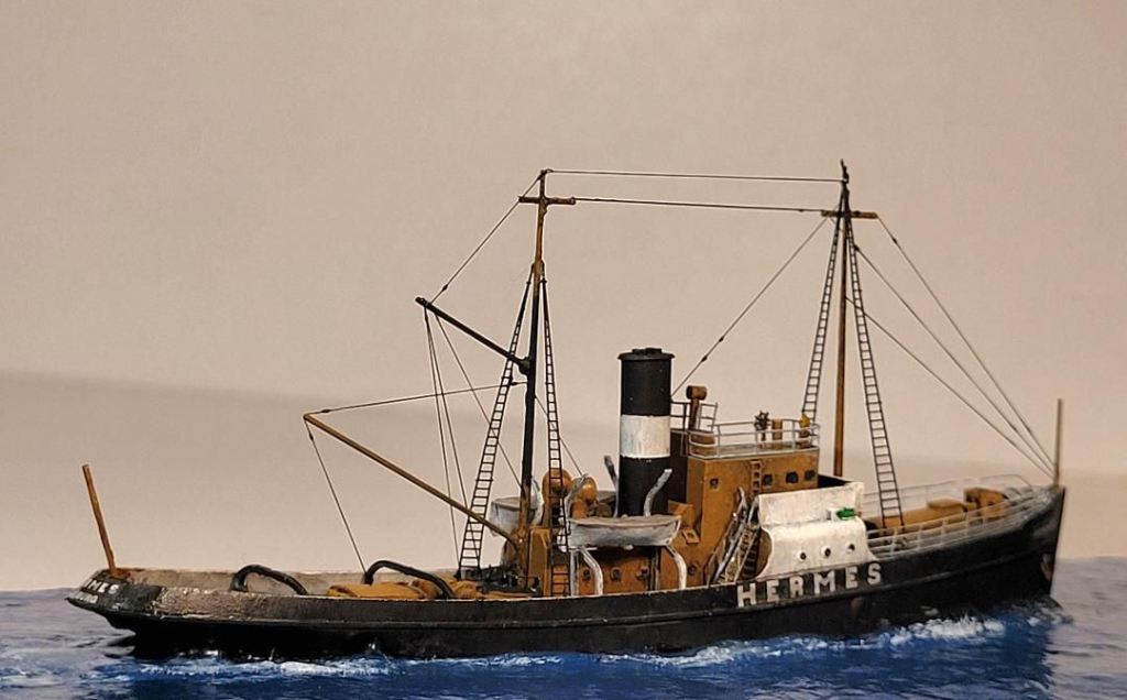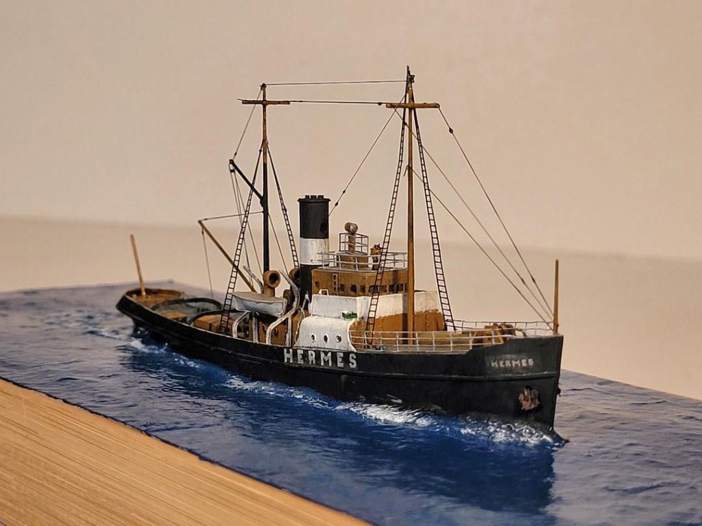 Der Hafenschlepper Hermes ist im Masstab 1:350 als Diorama gebaut
