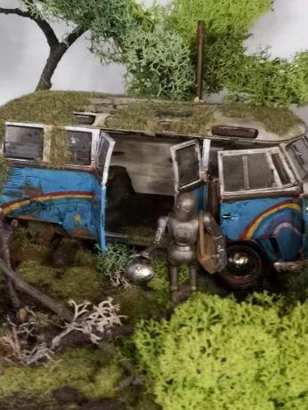 Michael entwickelt und stellt seine Figuren und Diorama her.